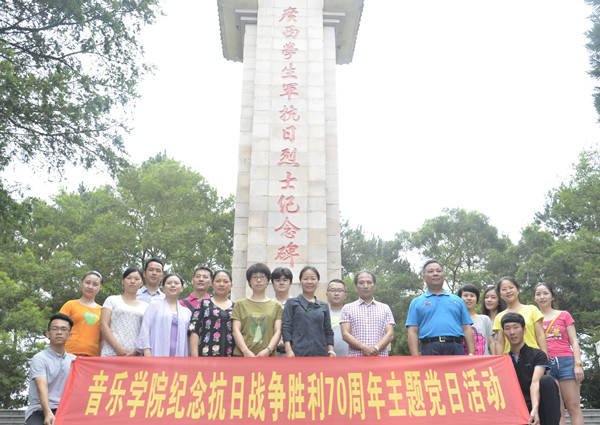 2015年7月6日上午,音乐学院党政领导班子及师生党员代表、预备党员代表一行18人赴青秀山公园开展“纪念中国人民抗日战争胜利70周年”主题党日暨“三严三实”专题教育活动。
