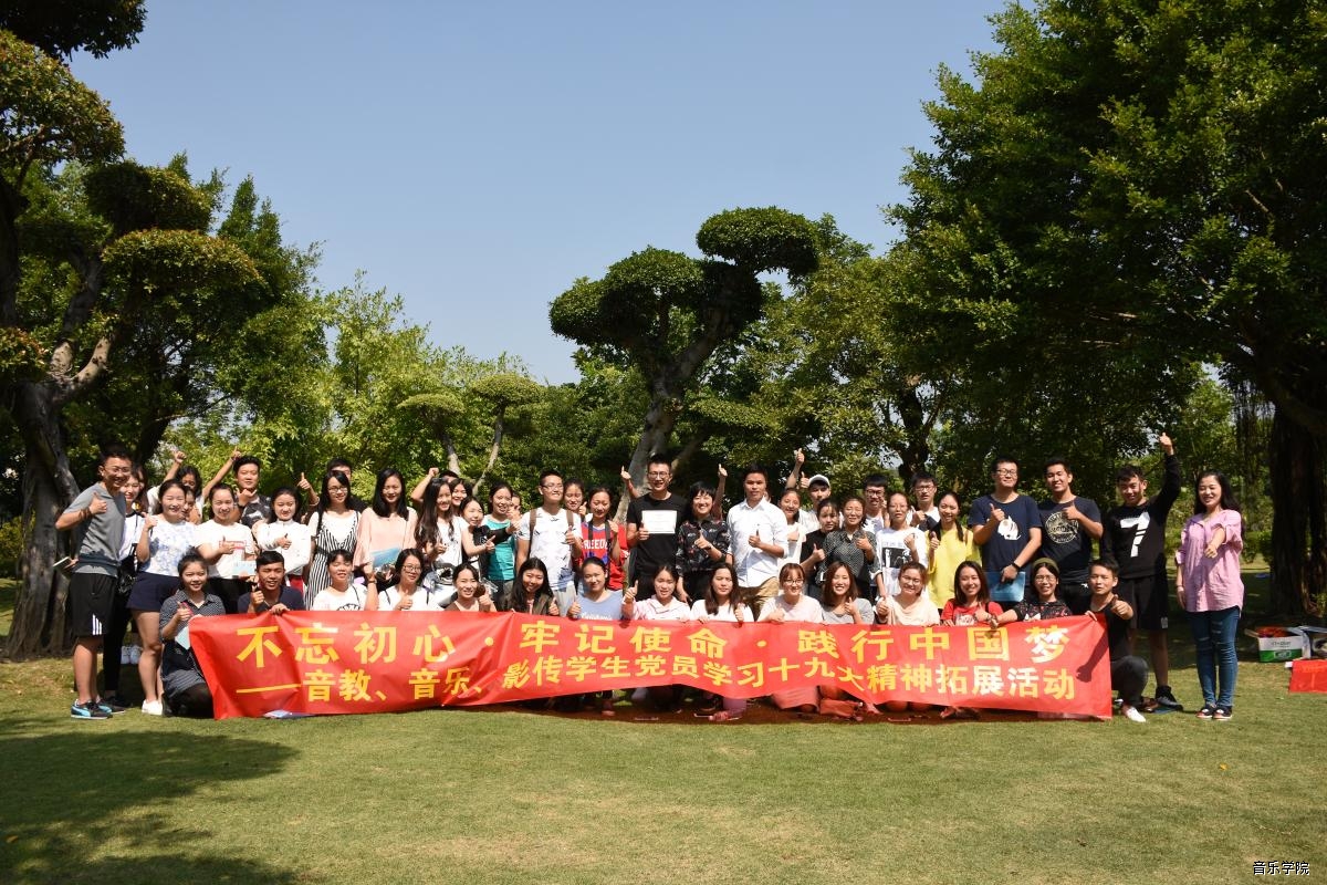 为深入学习领会党的十九大精神,扎实推进“两学一做”学习教育常态化制度化工作,抓好“三会一课”的延伸和拓展,推动学习教育融入日常,丰富党内学习活动,2017年10月29日上午,在音乐教育学院研究生第一党支部的邀请下,音乐学院研究生第二党支部、影视传媒学院影视编导系学生党支部在南湖公园开展了“不忘初心·牢记使命·践行中国梦”学习十九大精神拓展活动。