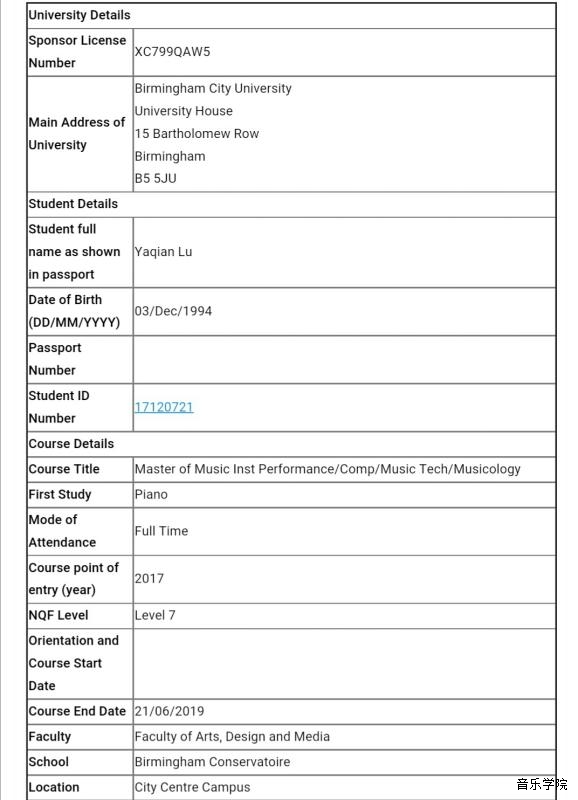 2016年,在梁旻昱老师的悉心指导和其自身的刻苦努力之下,报考的伯明翰音乐学院、利兹音乐学院、约克大学、南安普顿大学、卡迪夫大学等英国五所高校,全部收到了录取通知书。