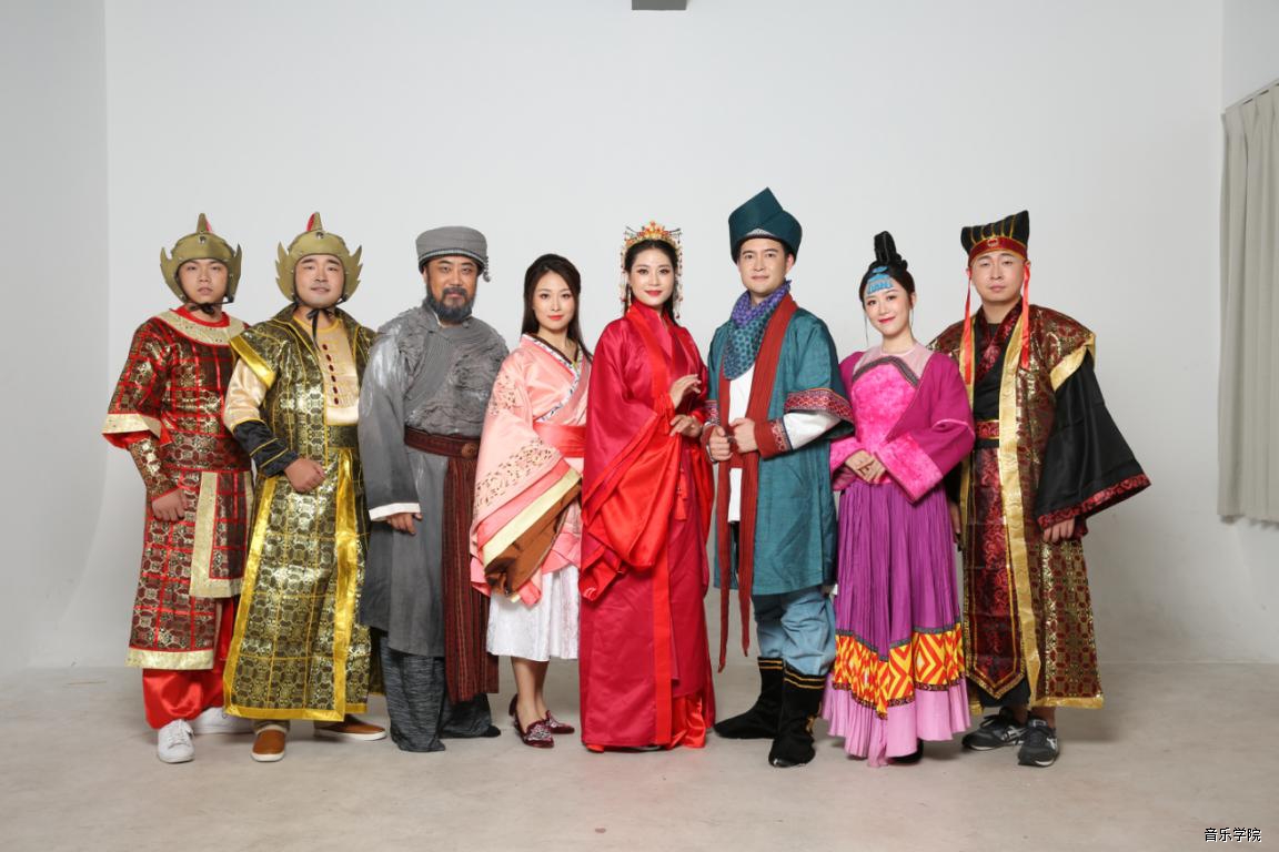 (剧中人物自左向右分别为:王威饰副将、刘畅瑞饰陈云啸、马兴智饰洛布隆老爹、颜娜琪饰丫鬟柳叶、张云龙饰亚洛、吴清饰明月公主、张薰涵饰娅妮、韩智饰太守)