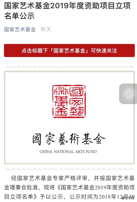 戴伟副教授获2019年度国家艺术基金青年艺术创作人才资助项目及小型剧(节)目和作品项目2个立项