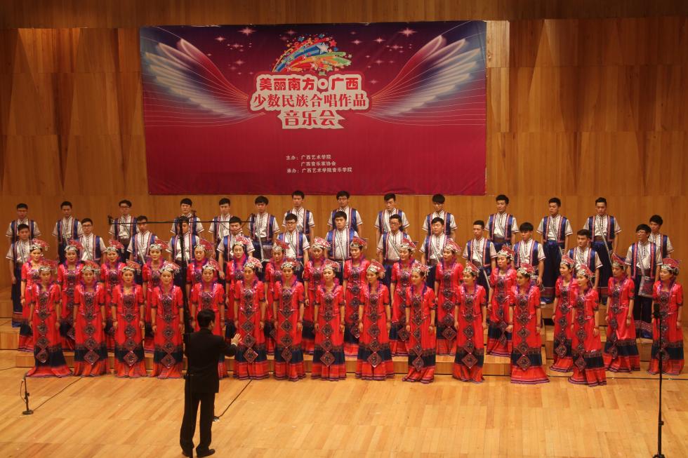 2016年1月7日晚8时,由bw必威西汉姆联、广西音乐家协会主办,bw必威西汉姆联音乐学院承办的“美丽南方·广西少数民族合唱作品音乐会”在广西民族宫音乐厅精彩上演。广西文联主席洪波,区党委宣传部文艺处处长黄云龙,学校赵焕春副书记、侯道辉副院长,音乐学院蔡央院长等领导以及中国国家交响乐团合唱团团长、著名指挥家姜金一,云南省音乐家协会副主席、著名作曲家刘晓耕,贵州省政府文化参赞、著名歌唱家崔文玉,贵州省文联副主席、著名作曲家汪信山,陕西省歌舞剧院院长、著名作曲家刘庆,广西音乐家协会副主席、著名作曲家黄朝瑞等多位国内著名的音乐家亲临现场与广大音乐爱好者一起聆听了音乐会。现场气氛热烈,观众座无虚席。