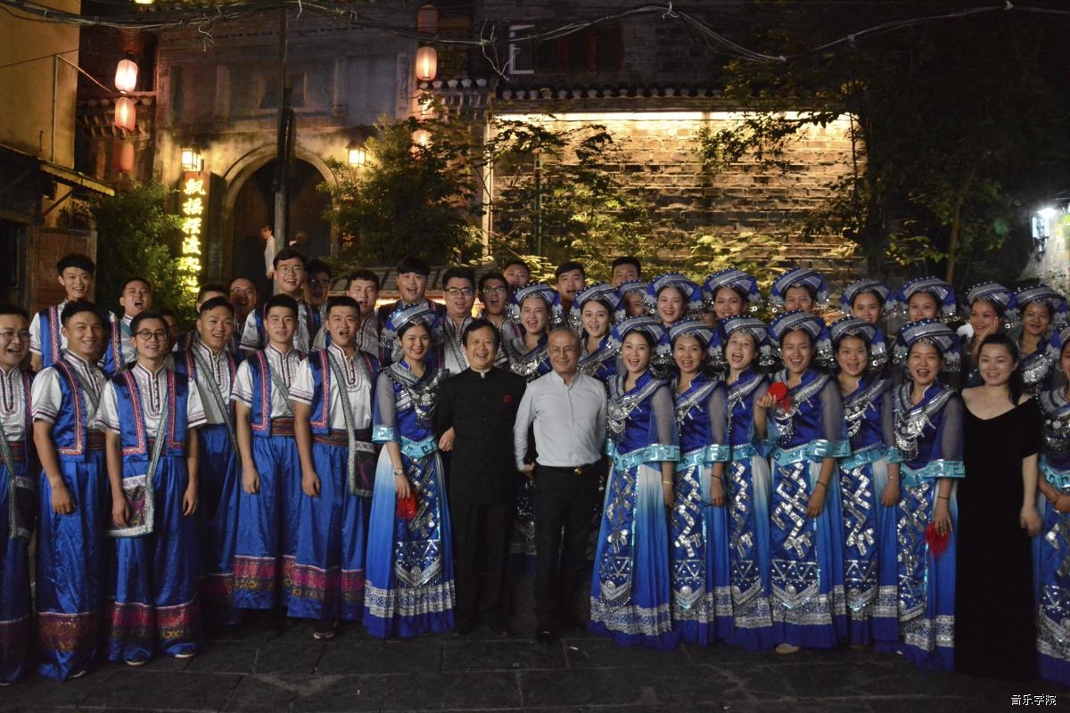 凤凰之夜晚会以凤凰古城吊脚楼和虹桥为主背景,游船为道具,沱江为舞台,融合湘西经典民族文化艺术、现代建筑投影、裸眼3D技术倾情打造。当晚,沱江两岸,灯光璀璨,古朴典雅的吊脚楼在夜色中显得色彩斑斓,流光溢彩,灯影照耀下的一切都显得极其美幻。我校合唱团以《我爱你,中国》、《撒里罗》两首作品在星辉斑斓里放歌,在光影交错中舞动,共同构筑起了一次“最古典”与“最当代”的对话,赢得了嘉宾观众的一致好评。