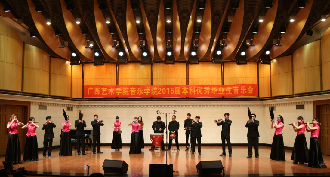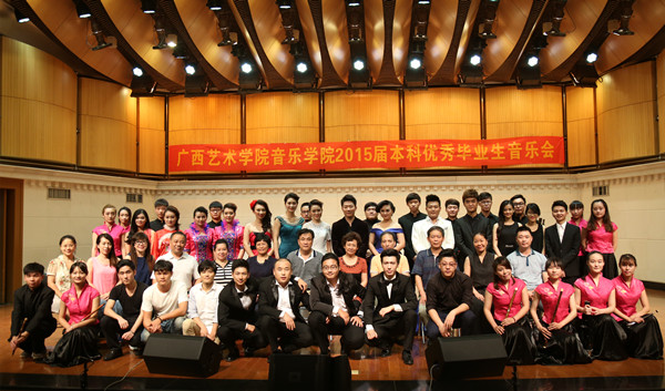 2015年6月15日晚8时,音乐学院在音乐厅成功举办2015届本科优秀毕业生音乐会,学院领导禤思、李沛新、韦俊平、侯道辉,院长助理、教务处处长钟宏桃,公共课教学部书记/主任张力以及我院全体领导到场聆听音乐会。