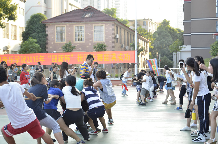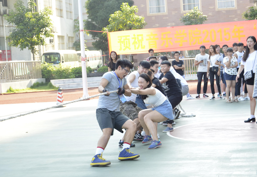为进一步丰富校园文化生活,培养学生的集体荣誉感,2015年10月17日下午,音乐学院在南湖校区篮球场成功举办2015年“迎新杯”学生拔河比赛。我院全体本科生班及2015级研究生班参加了比赛。