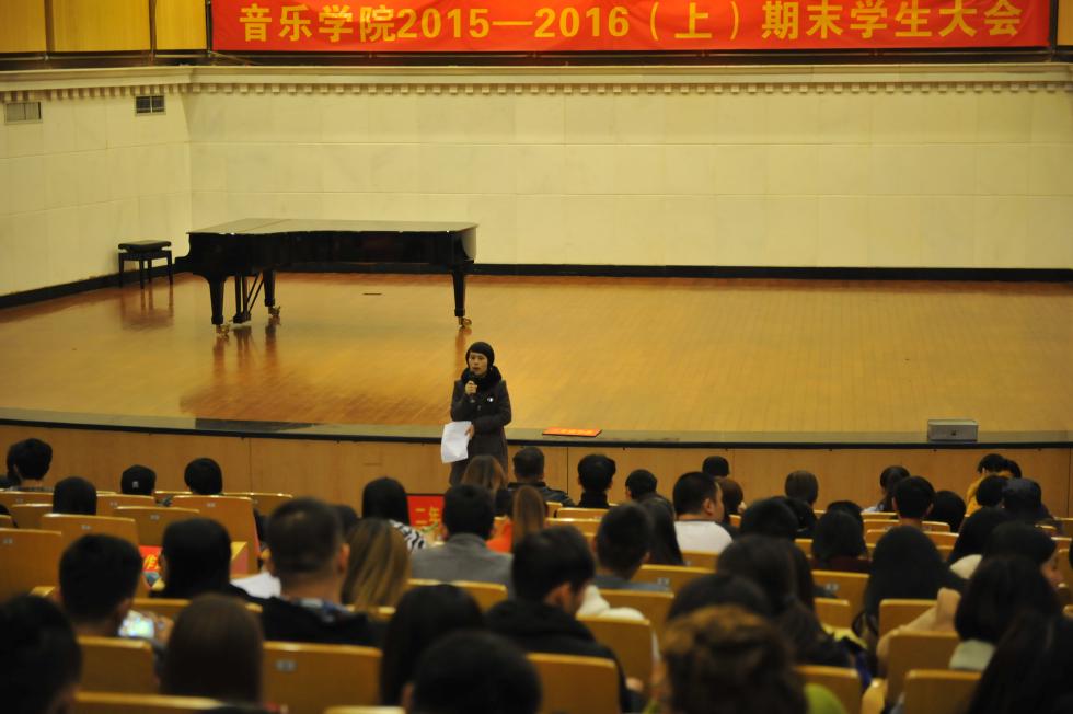 2015年12月28日下午6时开始,音乐学院分时段、分年级在南湖校区音乐厅召开了2015-2016学年上学期期末各年级学生大会。