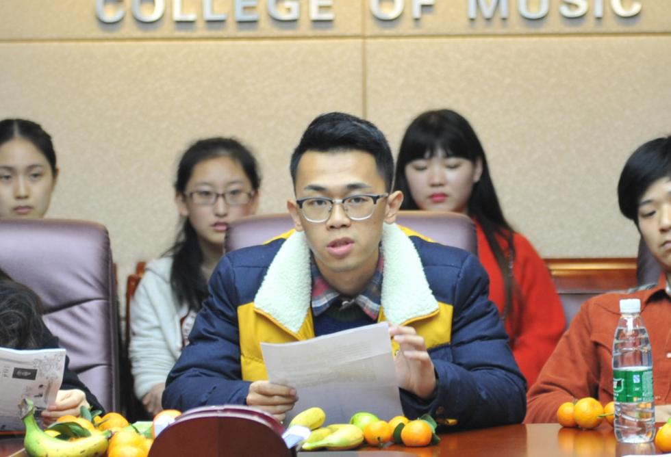 2015年12月23日晚,音乐学院在会议室召开“如何构建良好学风班风”主题座谈会。我院党总支副书记曾娇琳、吴霜副院长、辅导员与各班学生代表面对面,共话音乐学院学风班风建设。