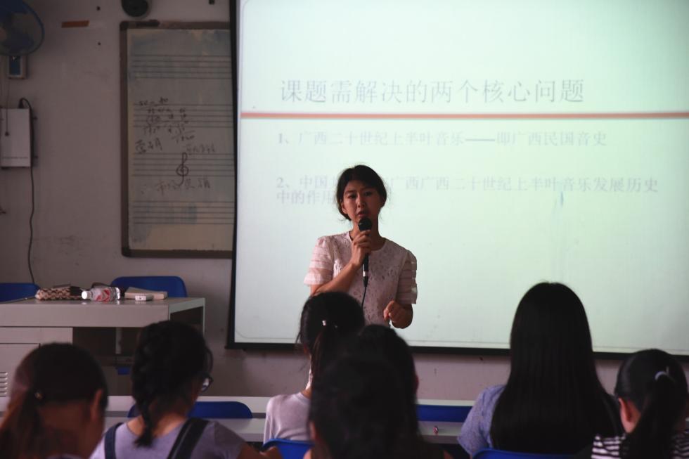 此外,为丰富活动的形式和内容,6月28日—7月1日期间,我院作曲系和音乐学系团支部邀请音乐学系李莉教授为同学们进行了《中国共产党和广西20世纪上半叶音乐》专题讲座;声乐系、流行系、钢琴系和民乐系各团支部则分别以演唱、演奏等小型音乐会的形式颂扬党了的光辉历史,缅怀了革命先烈的丰功伟绩,传承和弘扬了以爱国主义为核心的民族精神。