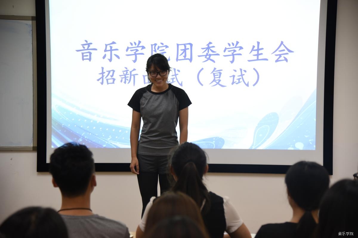 为确保我院团委学生会各项工作的顺利开展,进一步为我院学生组织注入新鲜血液,10月9日和10月14日晚上,我院在多媒体会议室和505教室分别进行了“音乐学院团委学生会招新”初试和复试工作,全体辅导员到场指导。经过严格考核,最终53人顺利通过复试,成为音乐学院团委学生会中的一员。