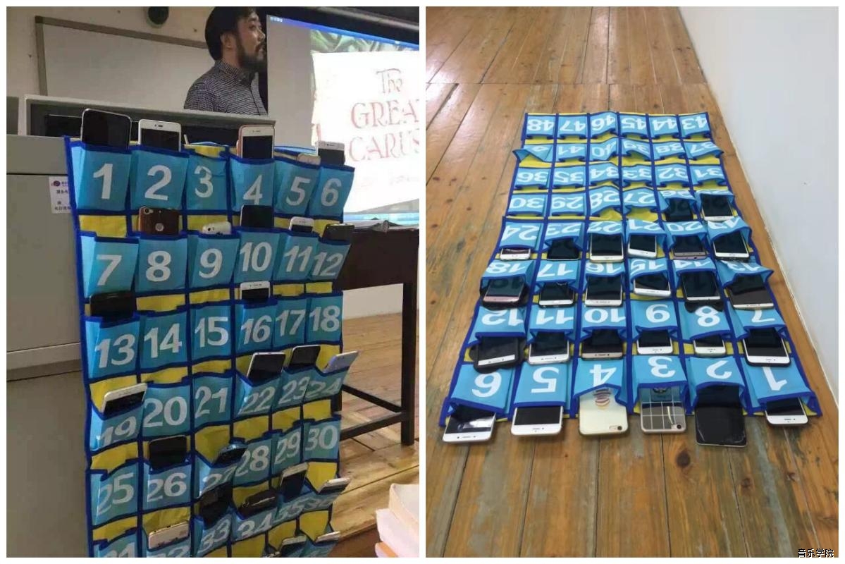 学生积极配合学院工作,课前将自己的手机放到收纳袋中