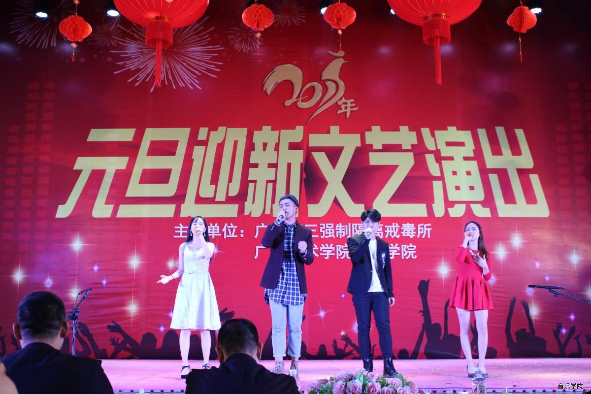 2016年12月30日下午,音乐学院团委组织十余名师生赴广西第三强制隔离戒毒所参加了元旦迎新文艺演出。演出中,我院学生倾情演绎的《美丽神奇的地方》、《我和我的祖国》、《sway》以及流行歌曲联唱等节目,均受到了警官们的一致好评和热烈掌声。