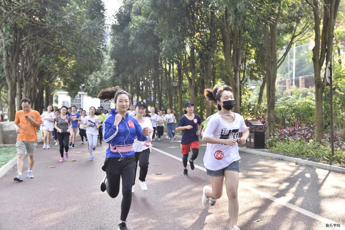 本次活动旨在鼓励同学们加强体育锻炼、走出宿舍、走向运动场,增进同学之间的友谊。活动以男女分组的形式进行,每位选手都佩戴有号码牌。为确保活动安全和顺利开展,跑道每100米均安排有1名志愿者,志愿者都统一穿着蓝色院服、手拿小红旗,为选手加油鼓劲,确保过程中选手的安全。短暂的热身结束后比赛开始,选手们轻快的脚步蓄积了满满的能量向终点进发,他们奔跑的身影如同一个个跳动的音符,在南湖赛道上谱写着坚持不懈,不轻言放弃的运动精神。