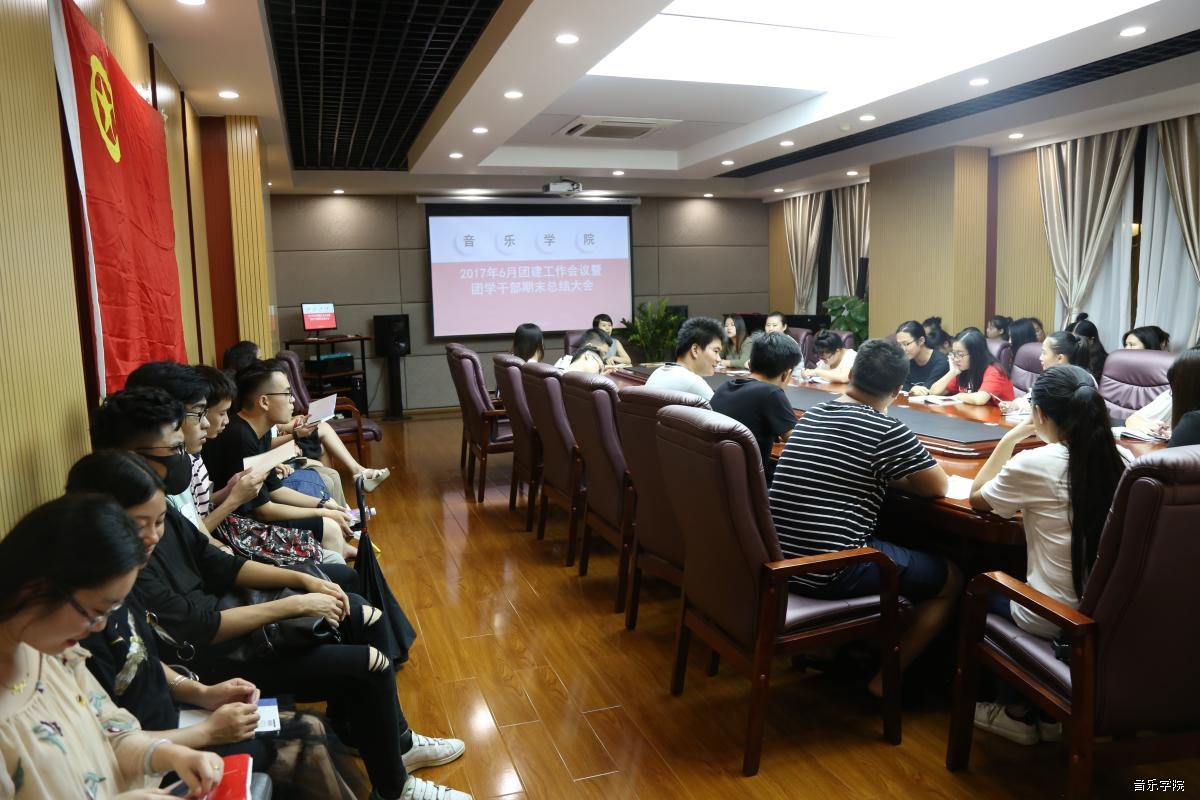 2017年6月26日晚19:30,音乐学院组织团支书、团委学生会干部在音乐学院会议室召开了2017年上半年团建工作会议暨团学干部期末总结大会,会议由团委书记赵艳飞主持。