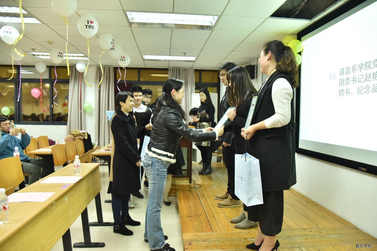 我院党委副书记、纪委书记李静为上一任干部们颁发了聘书并发表讲话,她对一直以来为音乐学院团委学生会积极奉献和辛勤付出的上一任干部表示感谢;对新一届团委学生会干部表示祝贺,并提出希望和要求,希望他们认真总结我院团学工作经验,分析当代青年学生的新特点,研究青年学生工作的新形势,本着对学院发展高度负责的态度,振奋精神,同心同德,群策群力,团结带领全院青年学生为学院建设和发展贡献力量!
