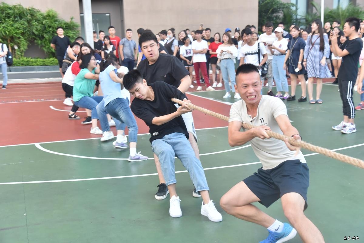 9月30日下午,音乐学院在南湖校区篮球场成功举办2017年迎新杯拔河比赛暨“青春喜迎十九大,不忘初心跟党走”主题团日活动。我院全体本科生班级及2016级、2017级研究生班参加了比赛。