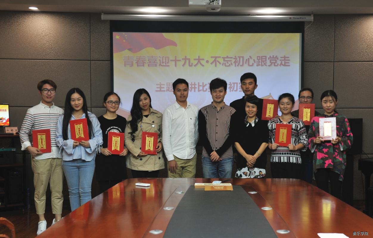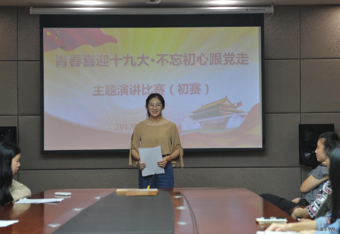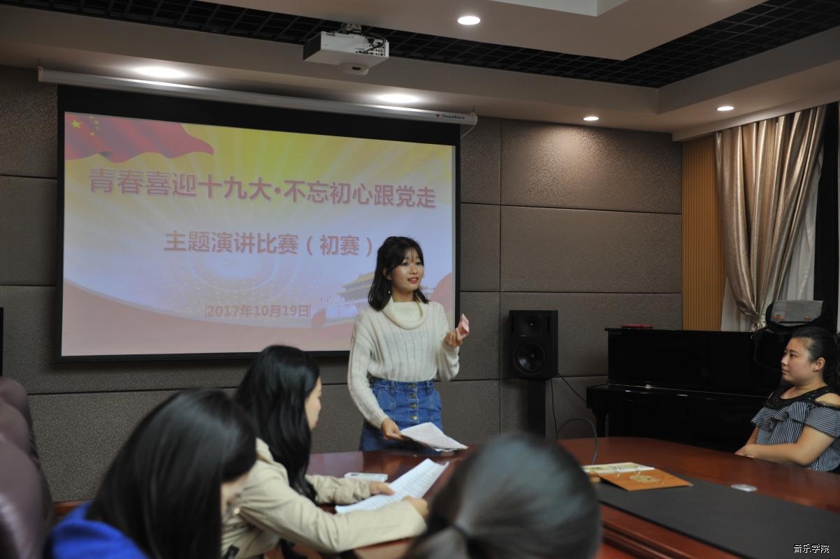 10月19日晚,音乐学院在多媒体会议室举行了“青春喜迎十九大·不忘初心跟党走”主题演讲比赛初赛。经过激烈的角逐,来自2016级中美班的陈丽因同学脱颖而出,勇夺第一名;2017级研究生班蓝梓元、2016级流行演唱班卢雨果、2017级流行演唱班廉欣悦荣获二等奖;2017级演唱班李欣雨、2017级研究生班何昆、2017级录音班杨均婷、2017级音乐学班苏华茵荣获三等奖。
