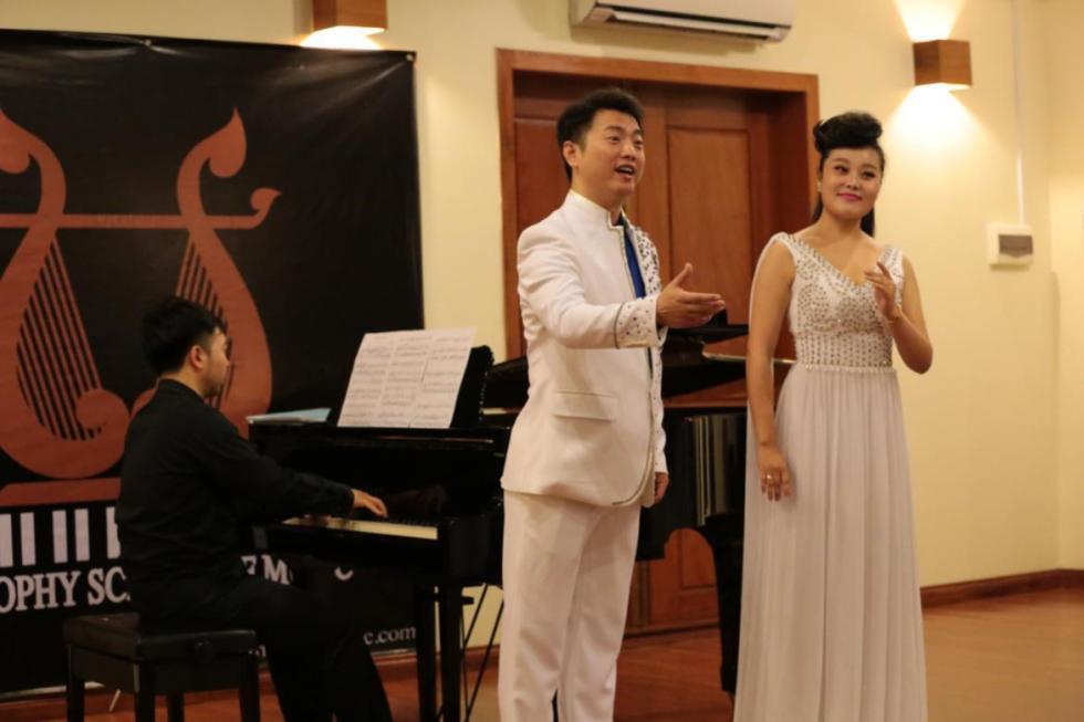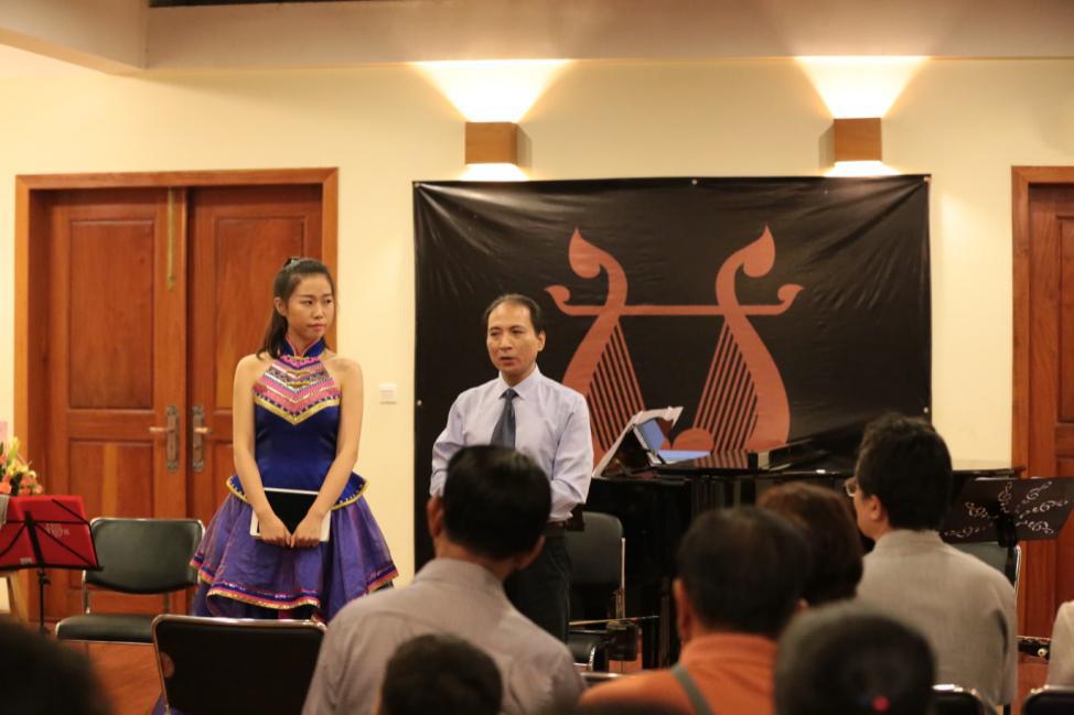 当天晚上,我院代表团还在柬埔寨皇家艺术大学音乐厅举办了“中国·广西漓江室内乐团柬埔寨交流音乐会”。民乐系青年教师王莉萍、曹可欣、舒芳、胡柳,钢琴系青年教师陈斯凡,声乐系青年教师刘璐、熊雷等人分别演绎的民乐合奏《古寨乐影》、《敦煌》,钢琴独奏《山寨臆像》,歌曲《多谢了》等十余个节目都赢得了柬埔寨观众阵阵热烈的掌声。柬埔寨皇家艺术大学教授、TraySo乐团团长、艺术总监苏菲博士对本次音乐会给予了高度评价,柬埔寨国家电视台也对本次演出进行全程录像与新闻报道,并对蔡央院长进行采访。
