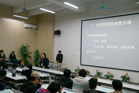 2014年12月11日晚7点,“品埙弄笛吟五声”——李海生民族管乐器艺术赏析讲座在bw必威西汉姆联相思湖校区设计楼2201教室举行,此次讲座由音乐学院李海生教授主讲。