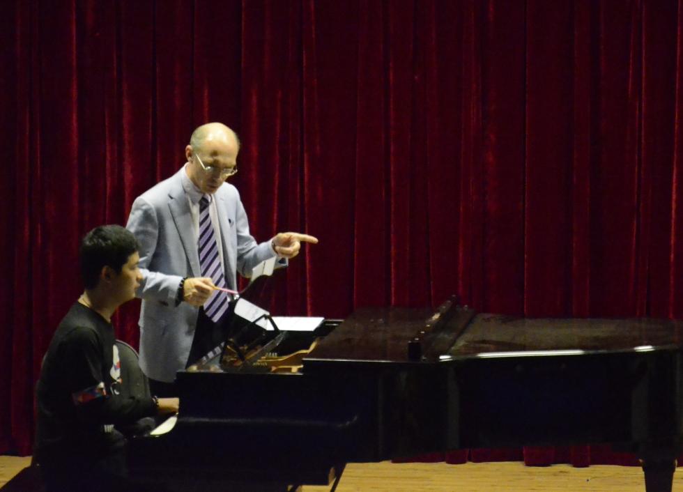 当天下午,索科洛夫教授还在学术报告厅为钢琴系的7名学生分别上了一次公开课,从触键、演奏速度、情感处理等方面对他们进行了一对一的指导。通过索科洛夫教授细致的讲解和精彩的亲身示范,在座师生均收获满满。