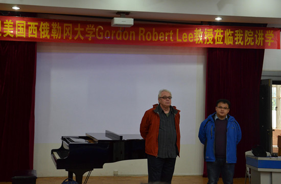 2014年12月16日上午九点,美国俄勒冈大学Gordon Robert Lee教授在学术报告厅为我院师生举行“五声调式在流行音乐中的运用”专题讲座。
