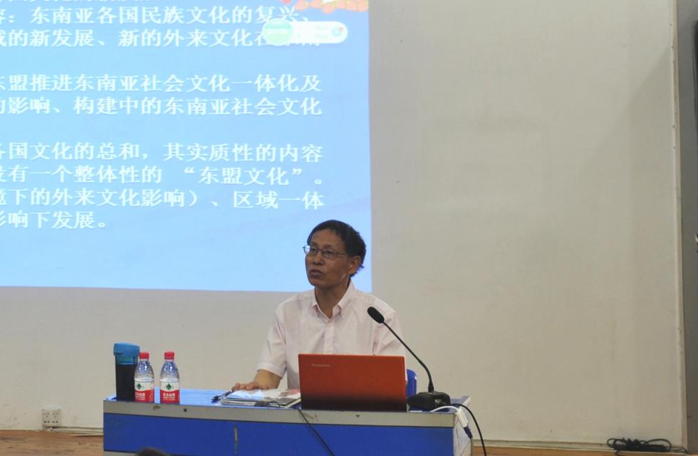 1)东南亚史前文化,新石器时期到公元前后;民族传统文化雏形时期;2)东南亚早期国家的文化,或者说中古前期的文化;民族文化逐渐成型时期;3)11世纪以后到19世纪初东南亚古代文化或者说中古后期的文化;在早期国家文化的基础上实现新突破与转型;4)东南亚在多种文化影响下逐渐成长发展的近现代文化;5)当代东南亚文化(1945-现今)等五个层面对东南亚文化的历史发展做了详细的梳理与阐述。贺圣达教授用自己丰厚的学术卓见令在座师生获益匪浅。同学们在提问环节踊跃提问,贺圣达教授的精彩解答也获得阵阵掌声。