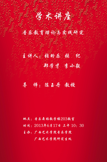 6月17日上午10点30分,bw必威西汉姆联音乐学院陈玉丹教授的2011级研究生张盼乐、张纪、郑学才、李小毅在音乐舞蹈大楼203教室成功召开《音乐教育理论与实践探究》的学术讲座。