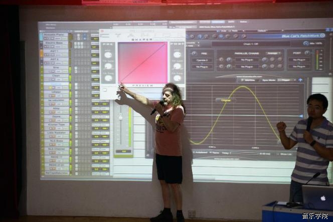 整场讲座分为上半场和下半场,总时间持续了四个半小时,Luca严谨、细致的为我们分析了他的工程文件,在此期间提及了非常多的专业术语:鸡尾酒会效应、掩蔽效应、直流偏移等等,并演示了效应的优缺点和解决办法,对在场师生的混音制作起到了非常大的帮助。讲座临近结尾,师生们踊跃提问,问题涉及压缩效果器的使用、软件效果器和硬件效果器之间的音质对比等,Luca都一一予以了细心解答。