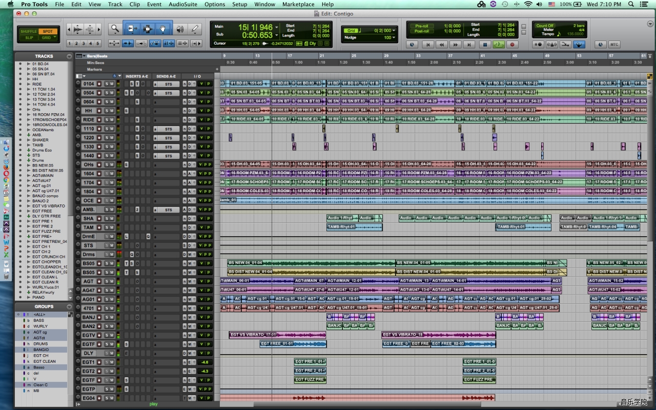 讲座期间,Luca以边演示歌曲《Contigo en el camino》的工程文件边讲解的形式,给大家展示了谐波失真、削波失真在爵士鼓组、贝斯和吉他等乐器混音中的应用,在按照Luca所讲授的方法使用了失真效果后,在场听众均表示乐器的声音在听感上有良好的提升。其中,Luca详细介绍了鼓组、贝斯的混音制作手法,介绍了对不同乐器需进行的频率调节和压缩调节,并普及了音乐制作中基频、谐波、倍频程的使用。Luca还用了本身音量不大的班卓琴举例子,通过失真效果,改变其响度,使其与其他乐器完美融合,呈现出的整体音乐听感让人不禁感叹这国际一流的制作水准。