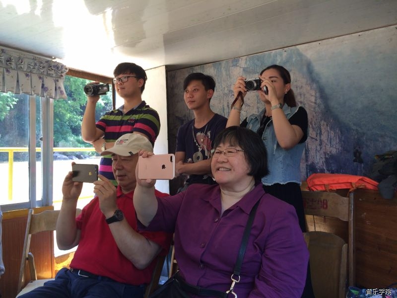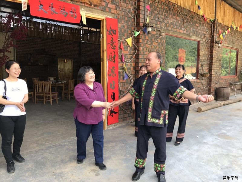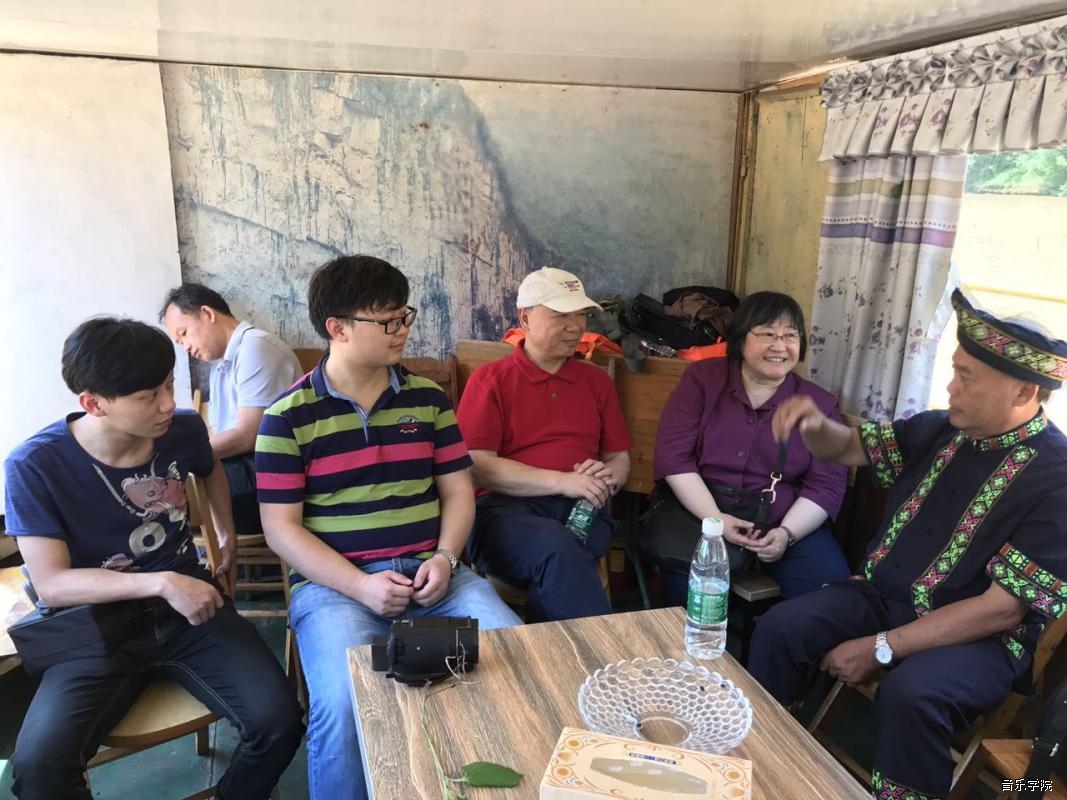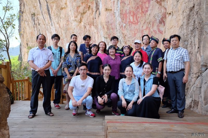 5月27日上午,由系主任丁铃教授组织作曲系师生与陈怡教授、周龙教授以及华南理工大学艺术学院的梁军院长、冯向阳书记和白翎教授前往崇左市宁明县花山岩画采风。在宁明音协副主席左江月、前主席吕少贤和四位宁明壮族民间歌手甘绍耿、林国焕、罗秀珠、闭秀芳的热情接待下,让我们聆听、采集到了珍贵的宁明当地的原生态民歌素材以及关于花山岩画的传说故事。
