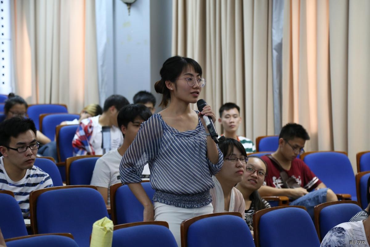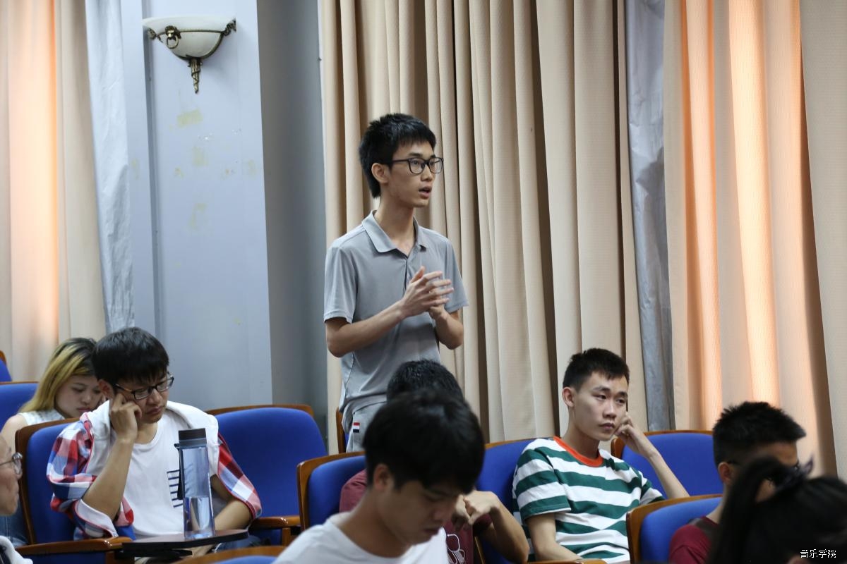 当天下午,陆培教授的《作品结构的构成要素之一:紧张度的准备与解决——以我的创作为例》讲座上,他主要阐释了“何为紧张度”、“紧张度的作用‘’、“紧张度的准备”以及“紧张度的解决”几个方面。通过陆培教授自己的《山海经》及《牡丹亭》作品讲解与分析,让同学们明白了音乐中紧张度的重要性。在讲座上,同学们从多方面的积极发言提问,都得到了陆培教授亲切耐心的解答,同学们都表示获益匪浅。
