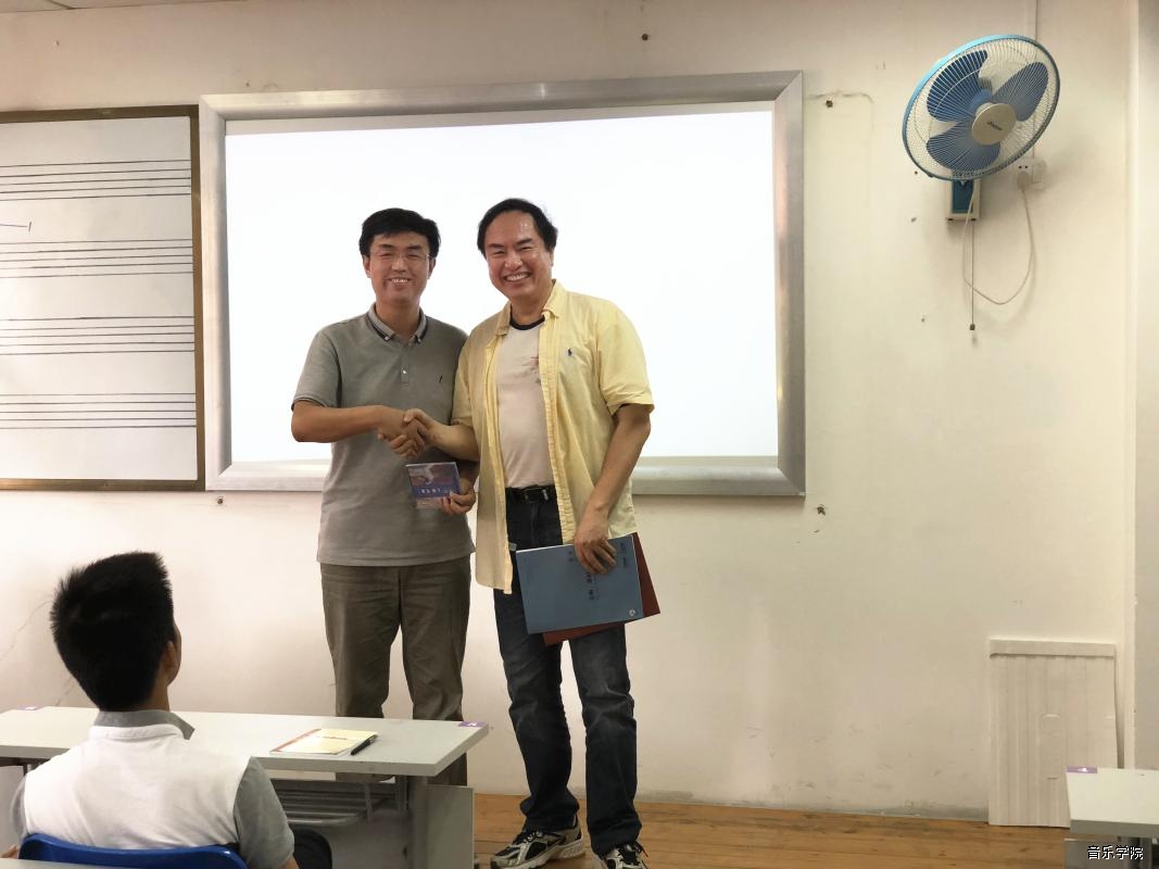5月3日上午的学术活动中,上半场首先进行的是“音乐学院作曲系2016级作曲班音乐会研讨会”。陆培教授对16级作曲班在音乐会中呈现的作品给予了总结性的评价与鼓励,肯定了作曲系学生在创作上的优势。同时,针对学生作品结构上普遍存在的不足,给出作品应如何安排高潮段落“黄金分割点”思维结构的方法建议。下半场是陆培教授的学术讲座《作曲教学·音乐创作·艺术实践》,陆培教授与我院师生分享了他所创作的《看啊!那和平的旗帜》《上海节奏》等作品。在分析作品创作思路与方法时,陆培教授再次提出“黄金分割点”让学生以作品为例,真正的感受到“黄金分割点”在作品结构中重要性。陆培教授提出作曲教学是作曲与作曲技术理论人才培养的重要组成部分,教师通过教学实现向学生传授知识,促进自身知识面的拓展与知识量的积累。有效的通过教师与学生的创作、作品音乐会的艺术实践,实现人才培养质量的提升。并认为作曲教学、音乐创作、艺术实践三位一体,才能构成作曲与作曲技术理论人才培养的基础框架。在讲座中,陆培教授还给学生答疑解惑,分析歌剧与音乐剧的异同,让学生得到了实质性的帮助。讲座结束后,陆培教授向音乐学院作曲系赠送了作品书籍与CD光盘,同时鼓励作曲专业学生积极创作,争取创作出更好的作品。