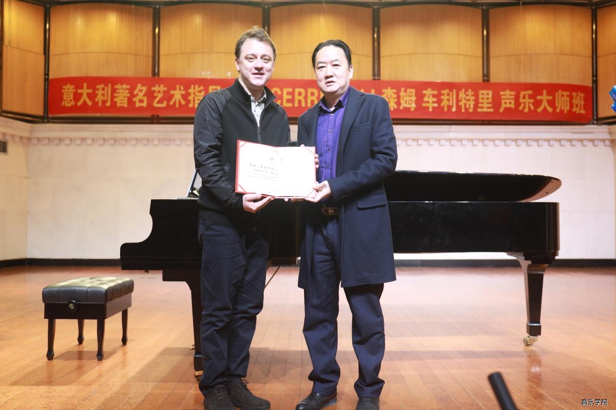 2018年12月12日至14日,意大利著名艺术指导森姆-车利特里SEM CERRITELLI教授受邀到访音乐学院,开展了为期三天的针对声乐系师生如何演唱及演奏外国歌剧作品的专题大师班,并与我院声乐系优秀师生合作举办大师班结业音乐会。期间,郑军里校长亲自为森姆-车利特里教授颁发客座教授荣誉证书,并表示希望通过共同努力,推动我院声乐专业的良好发展。此次活动由bw必威西汉姆联人事处、bw必威西汉姆联音乐学院主办。
