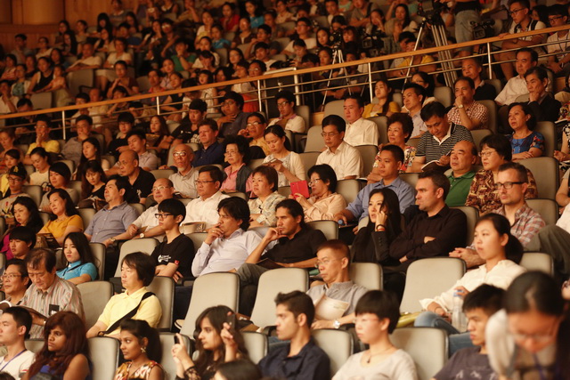 本次音乐会由来自加拿大的一流演出团体Esprit交响乐团与中国广西交响乐团联袂演出,指挥由加拿大Esprit交响乐团团长兼指挥Alex Pauk担任。音乐会在越南籍作曲家、钢琴家邓有福谱写的交响乐作品《宴请》中拉开帷幕;第二部作品是中央音乐学院作曲教授、博士生导师、中国音乐学院特聘教授秦文琛创作的管弦乐作品《意韵》;第三部作品是美籍华人作曲家陈怡博士创作的极具广西壮族特色的《歌圩》;第四部作品是德国作曲家、指挥家Widmann创作的《Con brio》。下半场的第一部作品是加拿大华裔作曲家Alexina Louie创作的弦乐作品《O Magnum Mysterium:In Memoriam Glenn Gould(1982)》;第二部作品,也是本场音乐会的最后一个作品则是我院作曲系教授、中国东盟音乐周艺术总监钟峻程创作的新作品《第四交响曲<新生命>》。该作品于2015年寒假期间完成,主要向听众叙述的是一种难以言表的年过花甲喜获小女的欣喜之情与天伦之乐,旋律轻柔动人、感人至深,赢得满堂喝彩。