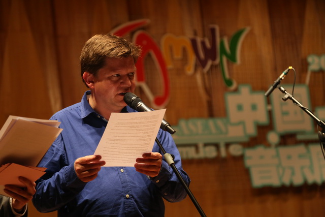 开幕式上,国际现代音乐协会ISCM秘书长Arthur van der Drift,美国堪萨斯城密苏里大学音乐舞蹈学院终生教授、博士生导师陈怡,泰国清迈交响乐团艺术总监、指挥、驻团作曲家Chaipruck Mekara分别致辞,我院院长、中国东盟音乐周组委会主席郑军里宣布本届中国—东盟音乐周正式开幕。