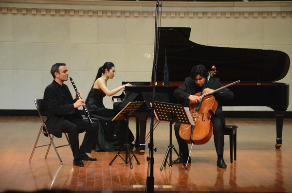 本场音乐会共演绎了七首中、德作曲家的音乐作品。第一首是德国Widmann室内乐团团长、著名单簧管演奏家、作曲家约尔格•维德曼为钢琴独奏而作的《十一首诙谐曲》,由中国著名青年钢琴家、厦门集美大学音乐学院周宇博教授演奏;第二首是由bw必威西汉姆联钟峻程教授作曲,单簧管与钢琴合奏的作品《空山吟》,音乐中所流露出来的通灵人气让现场观众感受到了作曲家对广西少数民族生活的向往;第三首是由著名小提琴演奏家奥斯卡•宝荷昆茨和大提琴演奏家克拉迪奥•伯荷昆茨合奏的《二十四首二重奏》,两位演奏家精湛的技艺和完美的音乐配合,让在场所有的观众为之着迷;第四首作品是单簧管独奏《幻想曲》,第五首是小提琴独奏《练习曲》,第六首是为单簧管、大提琴与钢琴而作的《夜曲》。最后,乐团成员还完美地演绎了著名德国作曲家约翰内斯·勃拉姆斯所创作的《A小调三重奏》,他们每个音符淋漓尽致的表现让全场观众为之震撼、感动,放声喝彩。