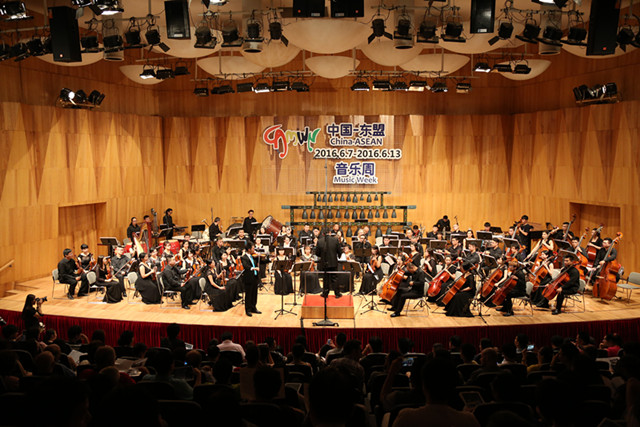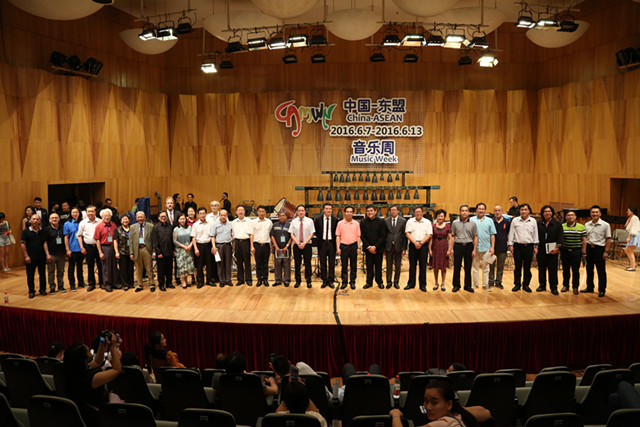 2016年6月7日晚8时,2016第五届中国-东盟音乐周开幕式暨交响乐作品音乐会在广西民族艺术宫音乐厅隆重举行。自治区党委常委、宣传部部长黄道伟,越南驻南宁领事馆总领事范清平,我校全体校领导以及来自世界各国和国内各大音乐院校的知名音乐家、学者参加了本次音乐盛会。