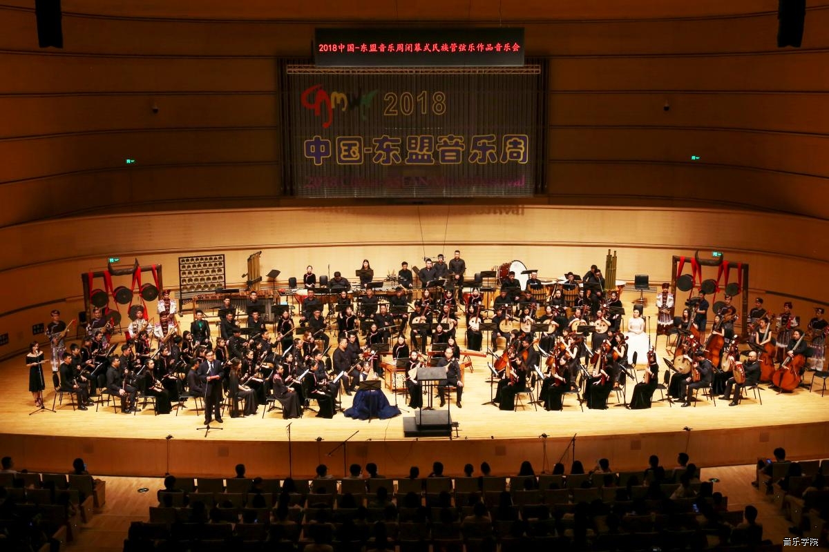 6月3日晚,2018第七届中国-东盟音乐周闭幕式暨民族管弦乐作品音乐会在广西文化艺术中心音乐厅隆重举行。自治区党委宣传部副巡视员、广西文联副主席黄云龙、广西大学原校长唐纪良、中央音乐学院副院长秦文琛、国际现代音乐协会ISCM主席、比利时皇家音乐学院作曲系教授Swinnen Peter Agnes A、菲律宾大学音乐学院副院长Jonas baes、美国堪萨斯密苏里大学音乐舞蹈学院终生教授陈怡、美国堪萨斯密苏里大学音乐舞蹈学院终生教授周龙,以及我校党委常委、副校长、中国-东盟音乐周组织委员会副主席侯道辉出席音乐会,各国来访音乐专家、学者与全市各界音乐爱好者近千人一起共同聆听音乐会。
