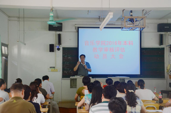 为全面做好2016年教育部本科教学审核评估工作的准备,突出我院教学发展的特色,5月26日下午3时,音乐学院组织全体教职工在公共教学楼202教室召开了2016年本科教学评估动员大会。
