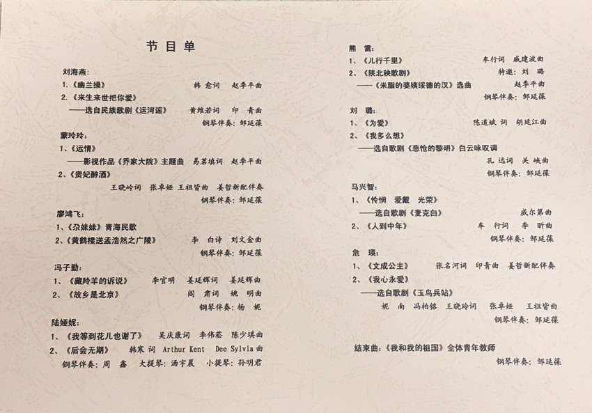 【2015年11月13日音乐会】音乐学院声乐系青年教师音乐会