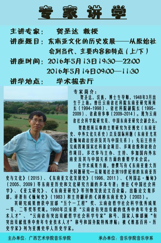 【2016年5月13、14日讲座】云南省社会科学院研究员贺圣达教授学术讲座