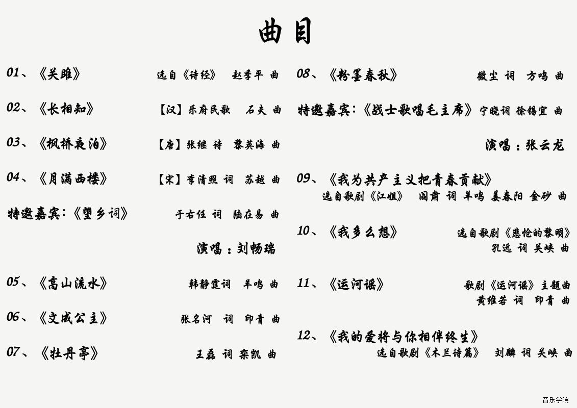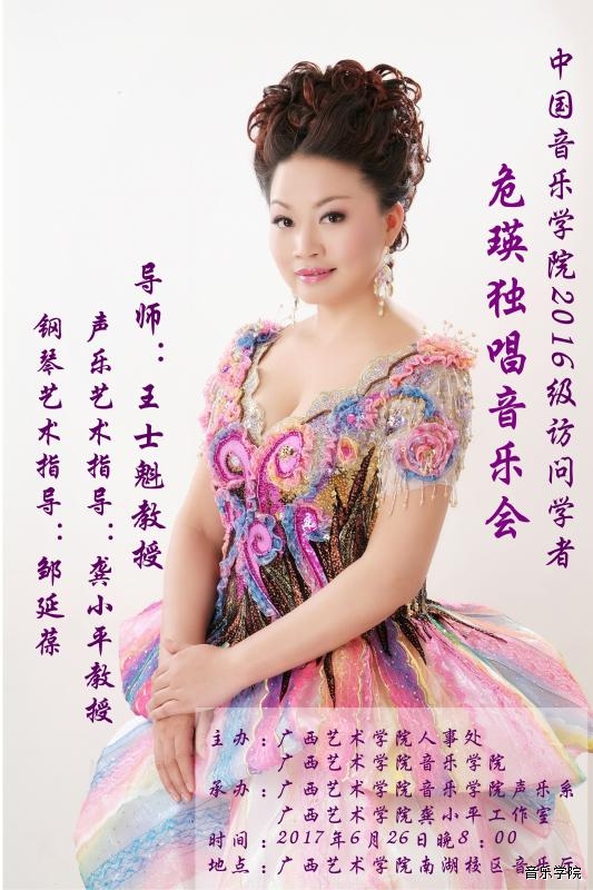 【2017年6月26日音乐会】中国音乐学院2016级访问学者、音乐学院声乐系危瑛副教授独唱音乐会 来源: 作者: 更新时间:2017-06-21 08:53:24 浏览次数: 次 【字体:小 大】 分享到: 【打印正文】