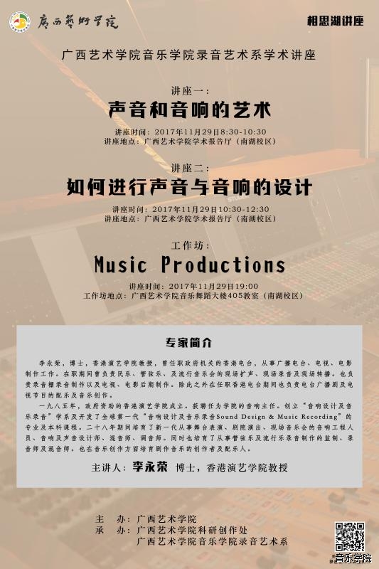 【2017年11月29日讲座、工作坊】香港演艺学院教授李永荣博士学术讲座、工作坊 来源: 作者: 更新时间:2017-11-27 14:05:00 浏览次数: 次 【字体:小 大】 分享到: 【打印正文】