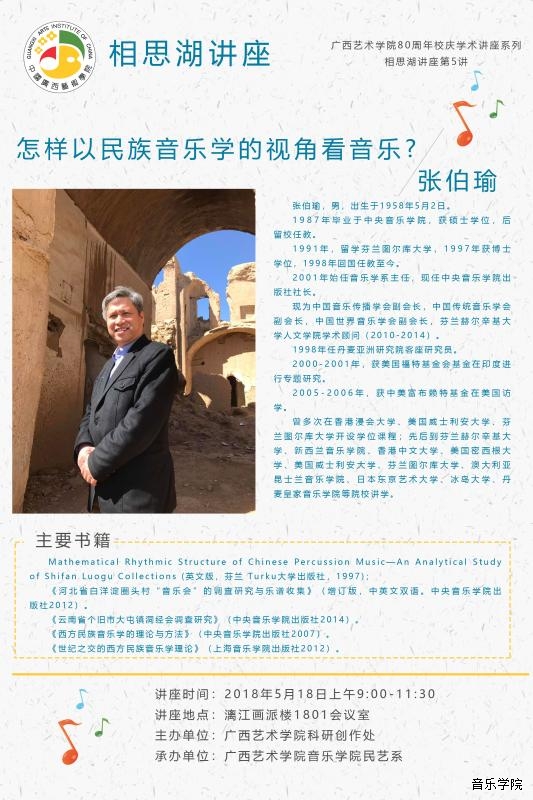 【2018年5月18日讲座】中央音乐学院出版社社长、博士生导师张伯瑜教授学术讲座 来源: 作者: 更新时间:2018-05-14 14:17:03 浏览次数: 次 【字体:小 大】 分享到: 【打印正文】