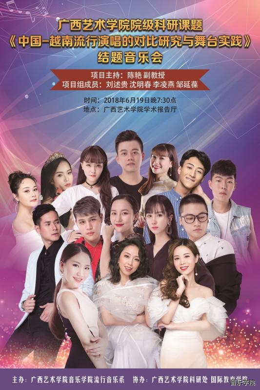 【2018年6月19日音乐会】bw必威西汉姆联科研课题《中国-越南流行演唱的对比研究与舞台实践》结题音乐会 来源: 作者: 更新时间:2018-06-17 08:32:15 浏览次数: 次 【字体:小 大】 分享到: 【打印正文】
