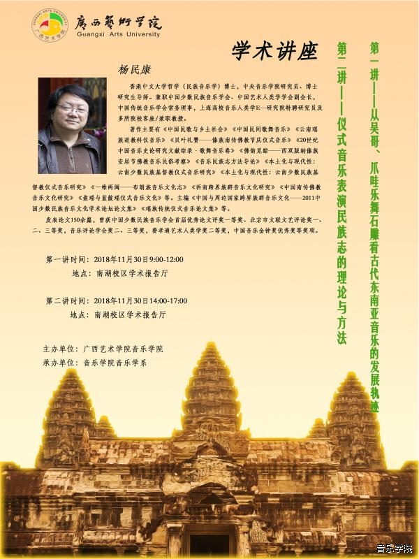 【 2018年11月30日讲座】中央音乐学院研究员、博士生导师杨民康教授学术讲座 来源: 作者: 更新时间:2018-11-26 11:35:38 浏览次数: 次 【字体:小 大】 分享到: 【打印正文】