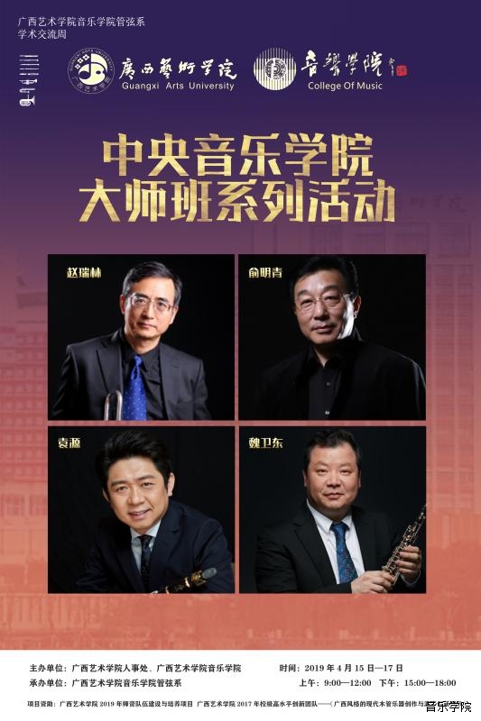 【2019年4月14-17日大师班】音乐学院管弦系学术交流——中央音乐学院大师班系列活动 来源: 作者: 更新时间:2019-04-10 15:19:14 浏览次数: 次 【字体:小 大】 分享到: 【打印正文】